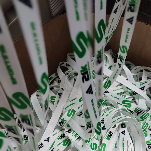 Fabricados en raso de 20 mm e impresos a un lado, con aro sin fin y mosquetón alambre.